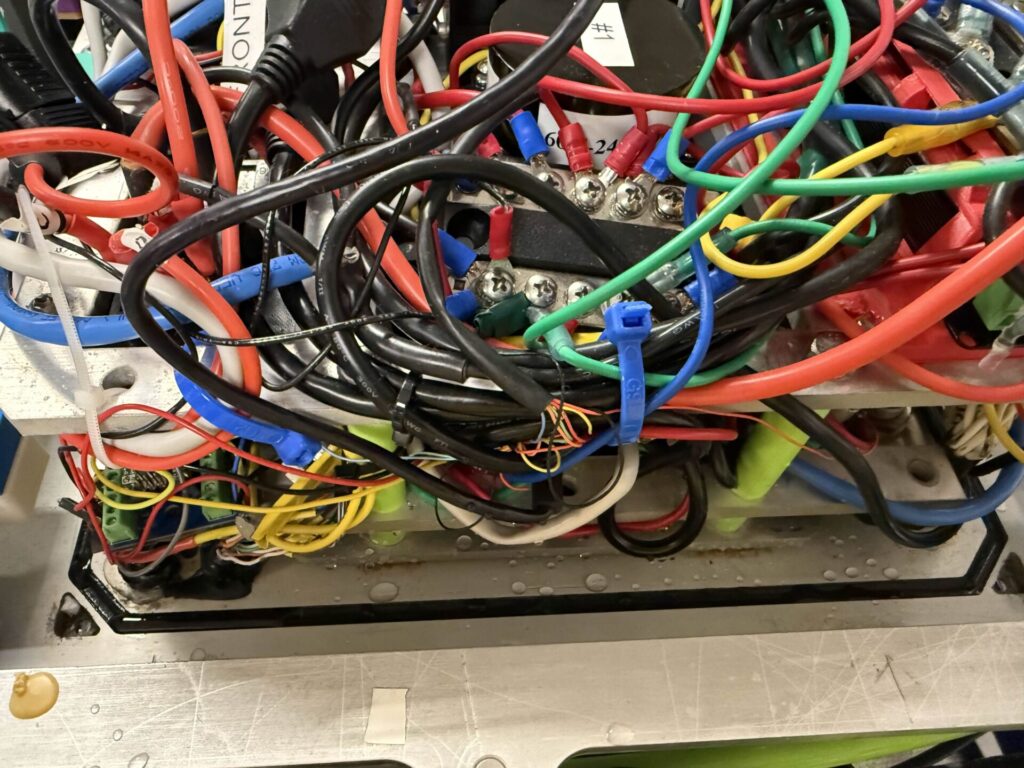 When back at the robotics room, we took off the main electrical stack capsule as well as the battery capsule as usual. When doing so, we observed a sizeable pool of water at the bottom of the battery capsule. Luckily, due to the elevated battery holder in the capsule, the battery and its cables stayed relatively dry. However, this issue must be investigated and fixed before the next test, and observed before the robot attempts any barrel rolls to ensure that the capsule is dry.