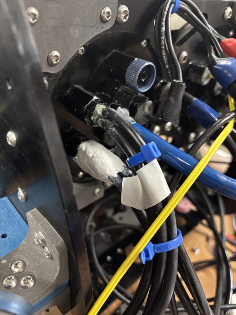 Crush’s journey to the pool hit a snag when we discovered water pooling inside the hull after only a minute of submersion. Through targeted testing, we traced the leak to a new penetrator in the backplate. To resolve this, we stripped the old epoxy and applied a putty seal around the entire assembly; subsequent sink tests show no visible water intake. While thruster issues have delayed us slightly, we are officially scheduled for pool testing on April 4th.